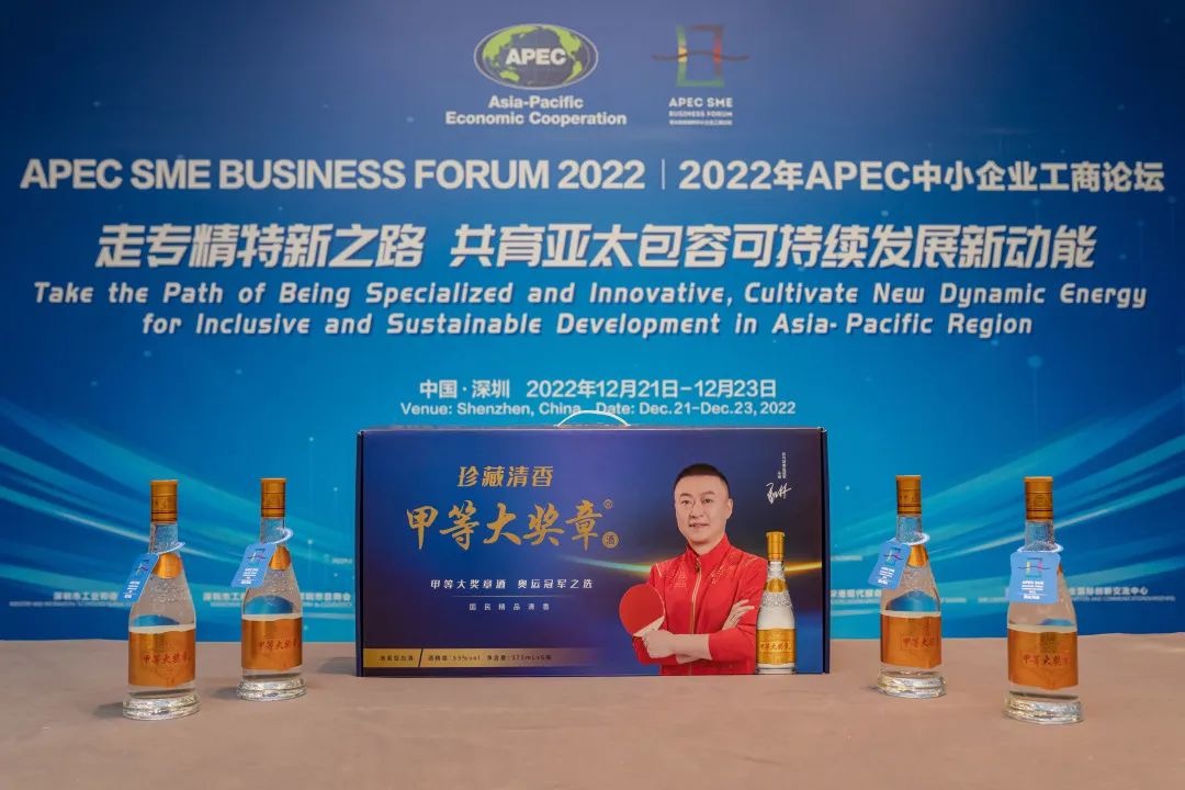 宝酝集团再度成为APEC中小企业工商论坛指定用品单位,旗下宝酝酱酒·癸卯兔年53度、五粮印象·水晶装52度、仁怀·1935 53度、甲等大奖章酒·珍藏清香53度和天塞酒庄T95马瑟兰干红葡萄酒等5款产品作为“2022年APEC中小企业工商论坛指定用品”亮相论坛现场。